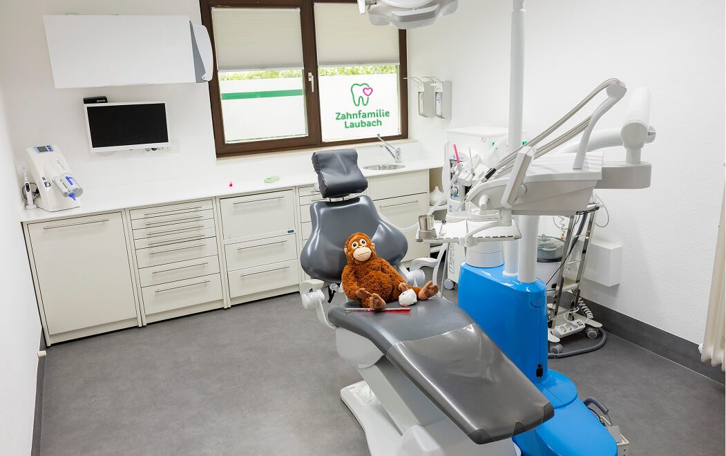 In unserer Praxis erwartet Kinder ein freundlicher, heller Behandlungsraum mit genügend Platz, damit auch die Eltern während der Behandlung dabei sein können. Spielerische Elemente, klare Erklärungen und Fernseher mit der Lieblingsserie an der Decke sorgen dafür, dass Kinder den Zahnarztbesuch als etwas Positives erleben. Auf Wunsch setzen wir Lachgas ein – eine bewährte Methode, um Behandlungen für Kinder angenehm und stressfrei zu gestalten. Unser Ziel: Ihr Kind soll sich wohlfühlen, Vertrauen aufbauen und mit einem guten Gefühl wiederkommen.